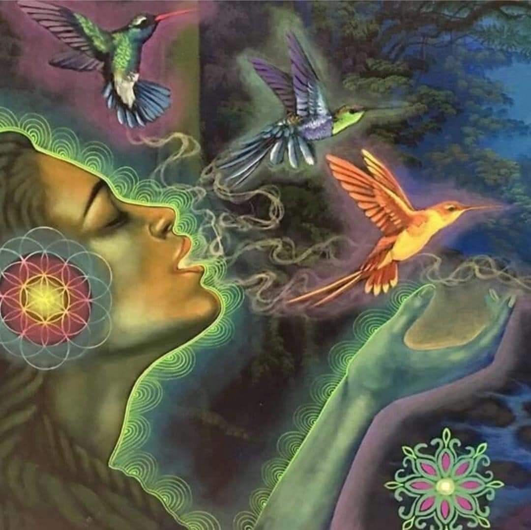 No te centres en las visiones pues son secundarias, a veces aparecen y a veces no y si aparecen es para llevarte hacia el sentir. Las visiones aparecen con los ojos cerrados y son imágenes lúcidas de la propia vida cargadas emocionalmente y también funcionan para relajar a la persona cuando son geométricas. Algunas personas están toda la noche pendientes de que aparezcan las visiones para saber “si ya ha empezado el viaje” cuando en realidad éstas no siempre aparecen pues la experiencia con ayahuasca es un estado de expansión de la consciencia en el que principalmente tu consciencia se amplía y tu sensibilidad se abre conectándote con la Inteligencia Superior del Amor.